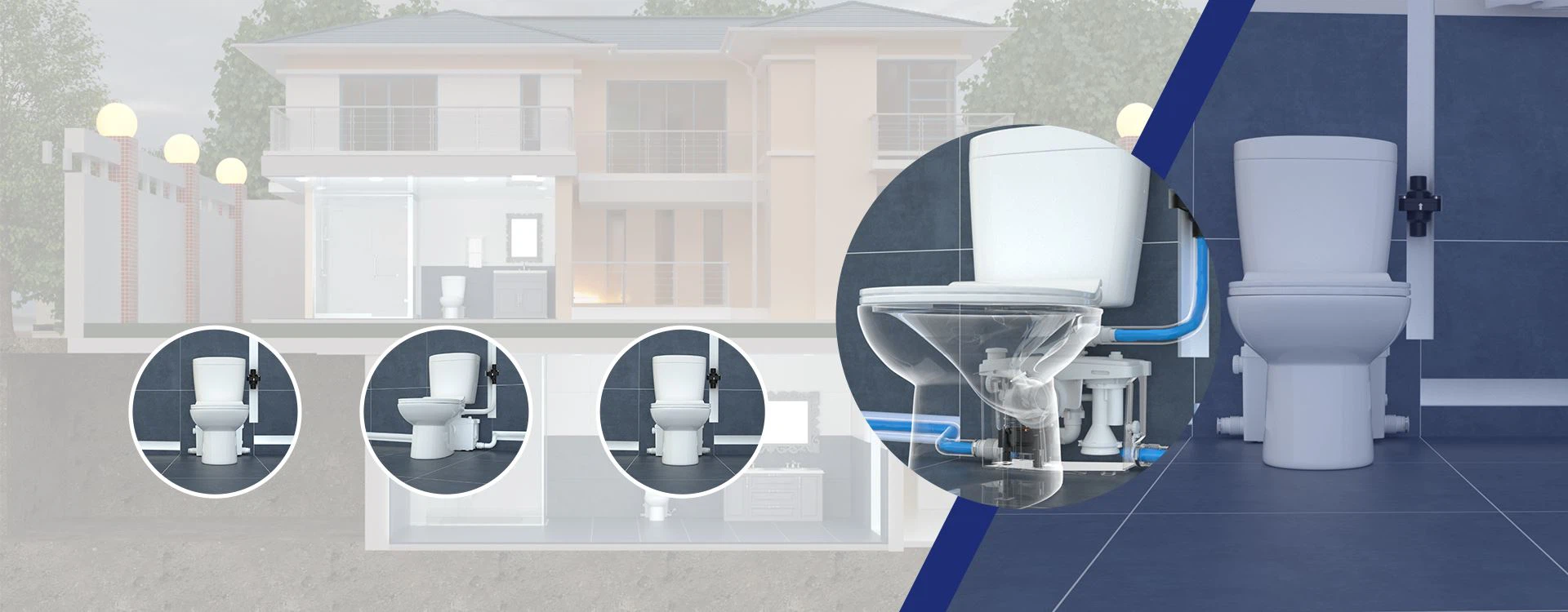 Toilet tal-Maċeratur taċ-ċeramika immuntat fuq l-art
